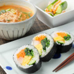 - 春菊は、細かくきざんで水にさらしておく。エリンギは食べやすくスライスしておく。
