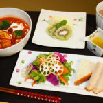 - 仕上げにだしじょうゆをまわしかけて、器にもりつける。